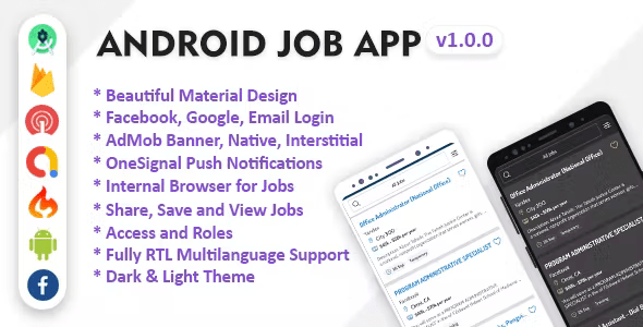 Android Job App is a mobile job system which run under Android platform that used for your own job application. Android Job App is the best way to start your own job application.Admin Panel developed using CodeIgniter Framework, PHP7, JavaScript and MySQL Database.
