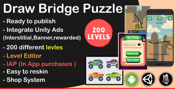 Draw Bridge Puzzle (complete unity Game +unity ads)