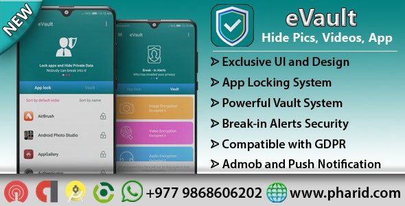eVault – Hide Pics, Videos with AppLocker | Beautiful UI, Ads Slider, Admob, Push Notification