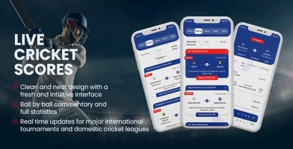 Live Cricket Scores app gives you full access to all cricket matches all around the world, receive notification for upcoming games, and get cricket live scores with ball by ball commentary.