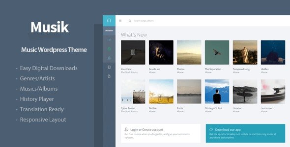 Musik is a responsive music wordpress theme, let you manage audio, album, genres, artist and sell the audio files to your customer.