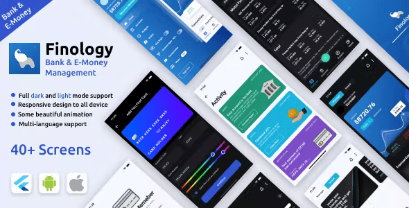 Online Bank & E-Money Management and Stock Market Android + Ios App Template | Flutter | Finology