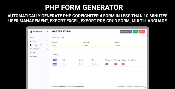 PHP Form Generator – Codeigniter 4 Form Master, Form Header Detail, User Management, Multi-language